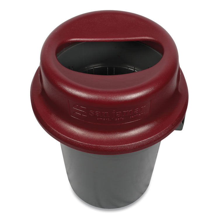 Save your silverware with a magnetized waste receptacle lid designed to catch flatware before it slides into the great beyond. A large opening allows easy waste disposal without the loss of valuable flatware. Lids are made from durable plastic for long service life. Waste receptacle lids are conveniently dishwasher safe. Lid Type: Magnetic Flatware Retriever; Material(s): Plastic; Color(s): Burgundy; Color Family: Red.