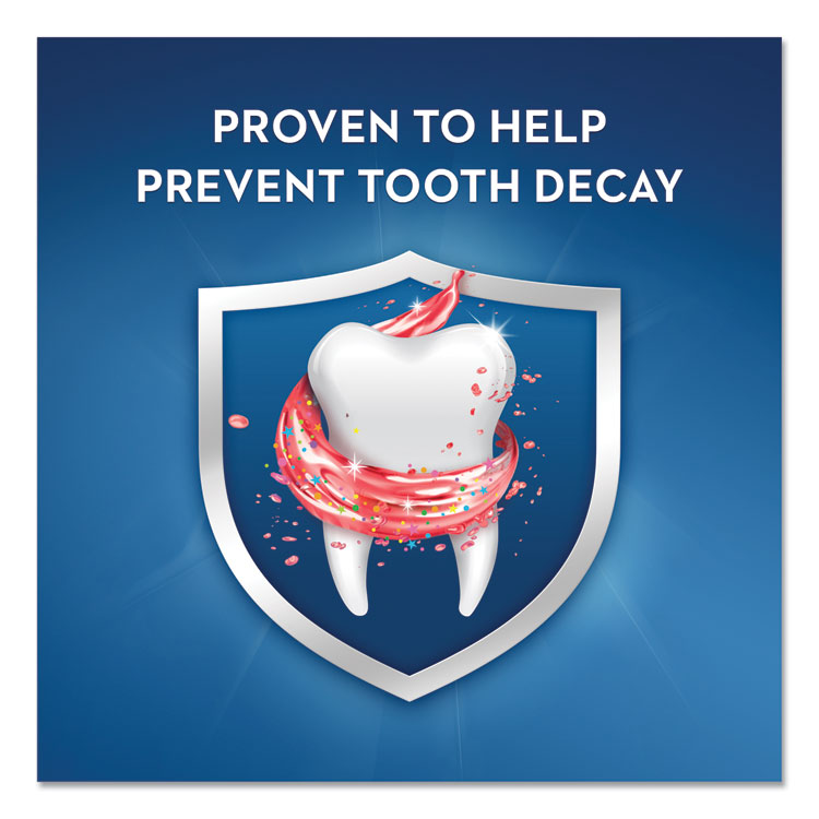 Put some radiance into your kids' oral health routine. The fun sparkles of Kid's Crest Cavity Protection Toothpaste make brushing enjoyable and encourage the daily habit. Plus your kids will be fighting cavities with clinically proven Fluoristat that's gentle on tooth enamel. Personal Care Product Type: Toothpaste; Scent: Bubblegum; Volume Capacity: 0.85 oz; Active Ingredient: Fluoristat®.