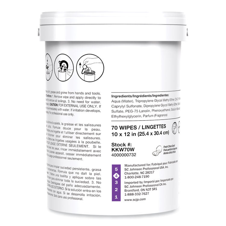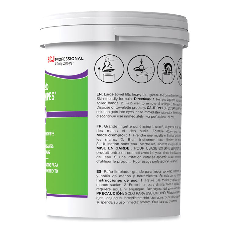Tough, extra large wipes for use without water. Formulated with powerful cleaning ingredients to remove a broad spectrum of contaminants. For use on skin, also great for tools and other surfaces. Convenient and portable. For use at the work station and for mobile workers to remove oil, grease and general grime. Wipes are strong and absorbent, acting quickly and effectively, leaving no sticky after-feel. Towel/Wipe Type: Hand Cleaners; Application: Hands; Applicable Material: Hands; Material(s): Cloth.