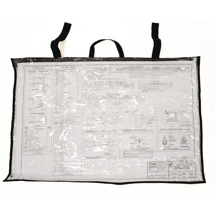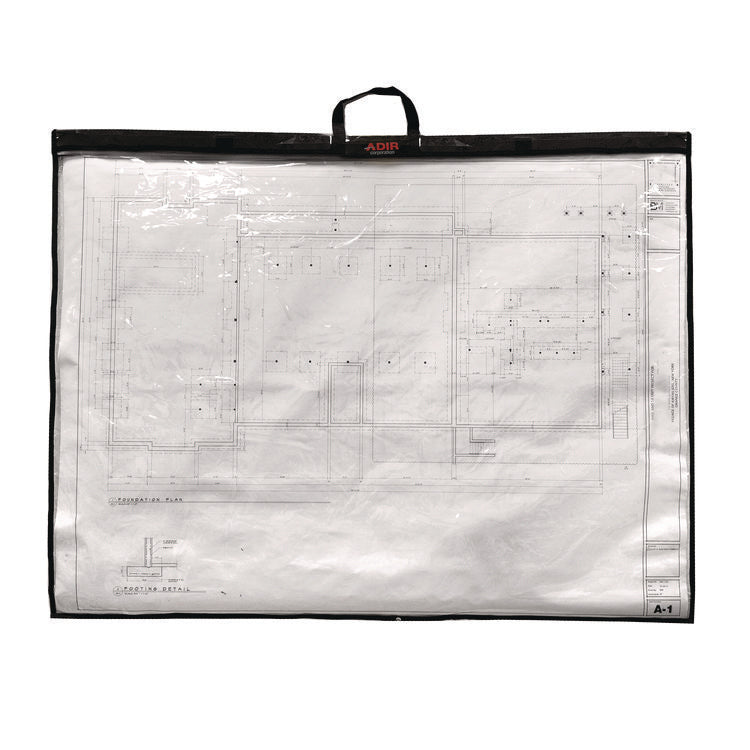 The AdirOffice Plan Shield is a weather-resistant carrying case used by building contractors, architects, engineers, artists, or anyone handling drawings or blueprints. The Plan Shield is made of clear plastic and durable black nylon that can withstand construction site conditions. The plastic is transparent on both sides so it can be used double sided. It also includes a magnet on each corner to keep the plan shield in place on any metal surface. It also includes a convenient handle for carrying. Additionally, it features two hook-and-loop straps to keep the prints rolled up for easy transporting. The Plan Shield will keep your prints from bending and getting wet or dirty. Color(s): Clear; Rack Style: Blueprint Literature Holder; Mounting: Portable; Document Size Accommodation: ARCH E (36" x 48").