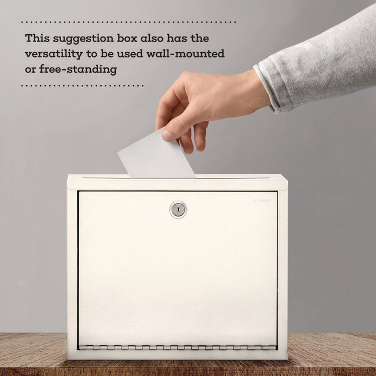 The Adir Corp Multi Purpose Large Size Suggestion Box can be used in any office as a mail collection box for all outgoing or incoming mail. It can also be used to keep private office correspondence confidential, allowing your employees or customers to voice their greatest concerns while remaining anonymous. Constructed of durable, heavy-gauge steel, the mailbox is designed to last you well into the future. It also features a scratch-resistant finish to stand up against everyday wear and tear, providing long-term durability and use for years to come. Serving a variety of needs, this drop box will be a convenient addition for retail stores, rental facilities, customer service counters, manufacturing plants, auto dealers and other facilities. The drop slot measures 10" x 0.31" deep, and can accept checks, keys, suggestion cards, envelopes or other materials dropped off after hours. A full piano hinged door with a durable lock ensures the items inside are safe and secure. Meanwhile, two keys are included for easy access and entry inside to remove items and make room for additional material. Finally, this multi-purpose box is equipped with pre-drilled holes and comes complete with screws for quick and easy installation on any wall or door. Material(s): Stainless Steel 304; Depth: 3"; Height: 10"; Width: 12".