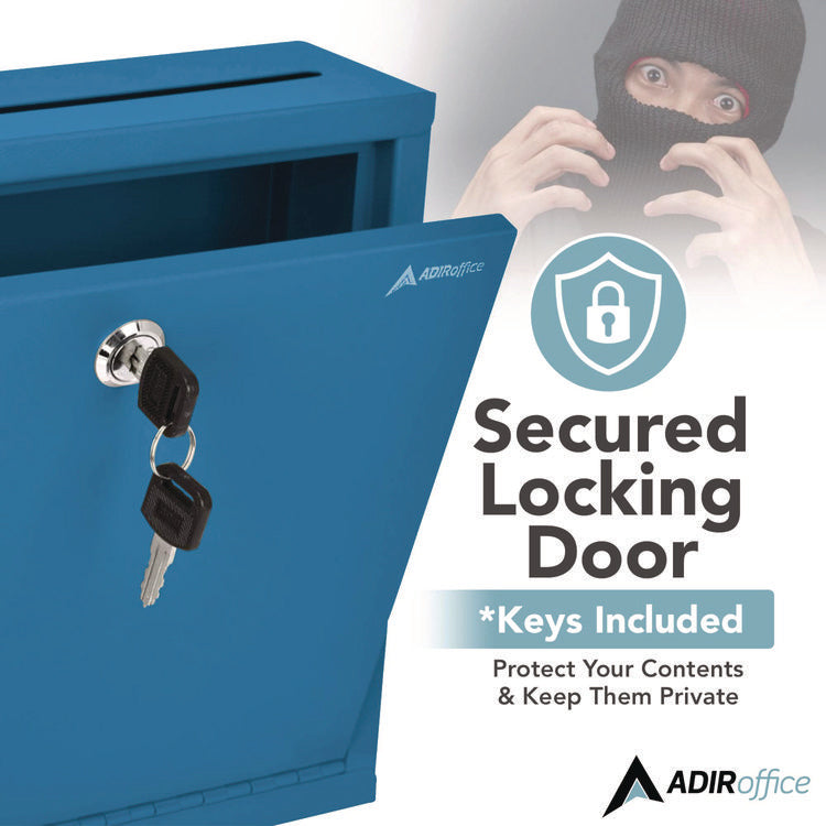 Large Size Steel Multi-Purpose Secure Drop Box, 12 x 3 x10, Blue