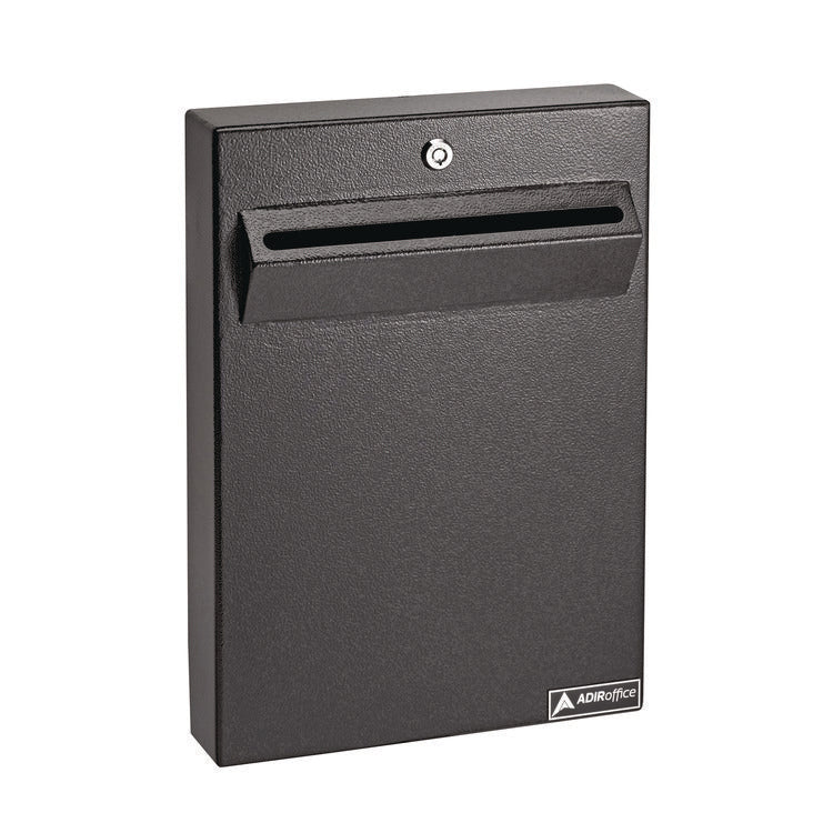 Perfect for any indoor or weather-protected location, the AdirOffice Wall Mount Drop Box for secure document storage is a low-profile but secure way of collecting important items like receipts, letters, and even cash. Durable construction and a neutral-colored finish make it ideal for any business where secure storage is important on a temporary basis. The 2.2" depth wall mounted steel drop box is specifically designed for receipt, temporary secure storage and retrieval of all items that can fit into its 9.25" x 0.4" slot. It readily accepts legal-sized documents, envelopes and other important correspondence that can be easily accessed through the storage compartment. made from steel and features a secure pick-resistant lock and two keys. Mounting hardware is included. Material(s): Stainless Steel 304; Depth: 2.4"; Height: 16"; Width: 11".