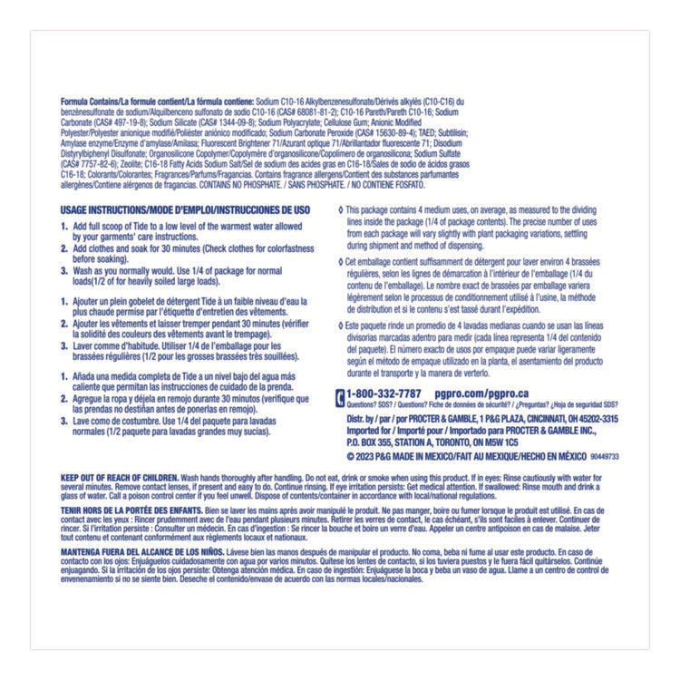 Attack even 7 day-old stains with Tide Original HE Turbo Powder Laundry Detergent with Acti-Lift Crystals. Washed 4 Loads. Application: Laundry Detergent; Applicable Material: Fabric; Dirt Types: Food Stains; Grass Stains; Grease; Oil-Based Soil; Organic Matter; Water-Based Soil; Scent: Tide® Original.
