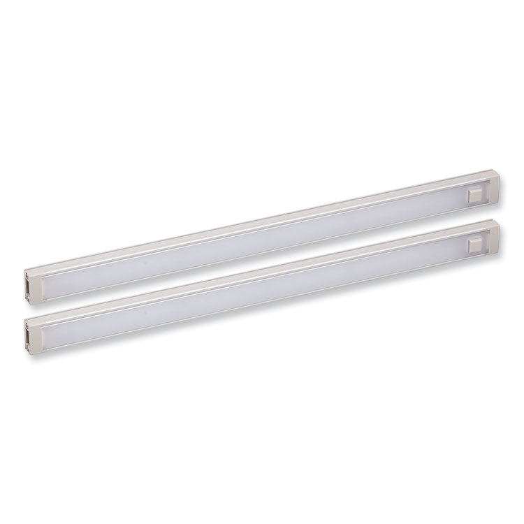 Stop the eye strain from harsh, fluorescent lights and upgrade your office with a simple, under cabinet task lighting kit that simulates a fresh, noon-time light. Featuring a simple installation system that's equipped with self-adhesive and magnetic mounts, this task lighting kit can be applied practically anywhere—no tools required. A motion sensor is included for hands-free power control, while 10 brightness levels allow for complete customization of your personal workspace. Height: 15.47"; Width: 4.41"; Switch Type: Motion Sensor; Light Type: LED.