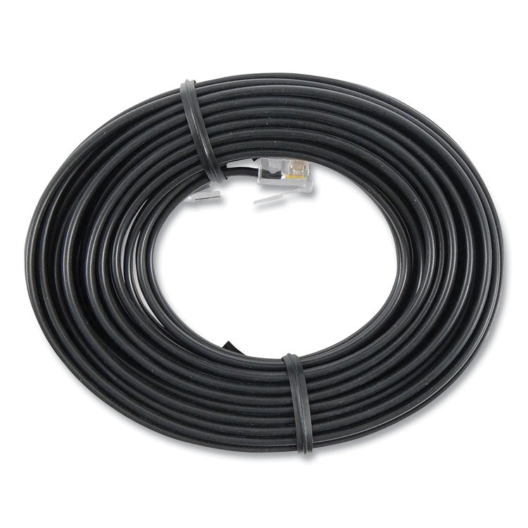 Connect phones, modems and fax machines to wall jacks. The modular jacks on each end are compatible with any brand. Extra length of cord allows you to reach devices that aren't near the wall jack. Easily installs into standard phone jacks without the need for tools. Cable Type: Line/Extension Cord; For Device Type: Fax Machines; Modems; Telephones; Connects Devices (From/To): Modem to Modular Phone Wall Outlet; Cable Length: 15 ft.
