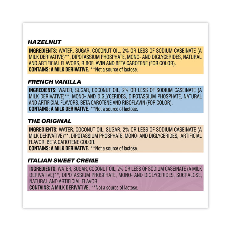Liquid Coffee Creamer, French Vanilla/Hazelnut/Italian Sweet Cream/Original, 0.38 oz Mini Cups, 200/Carton