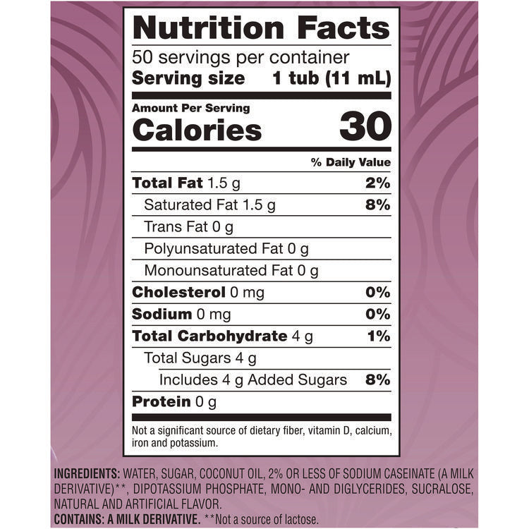Delight your employees, customers and guests by offering liquid creamer in your workplace, breakroom or kitchen. Lactose-free, cholesterol-free, Kosher dairy and shelf-stable. Flavor: Italian Sweet Cream; Product Packaging: Mini Cups; Premeasured: Yes; Volume Capacity: 0.38 oz.