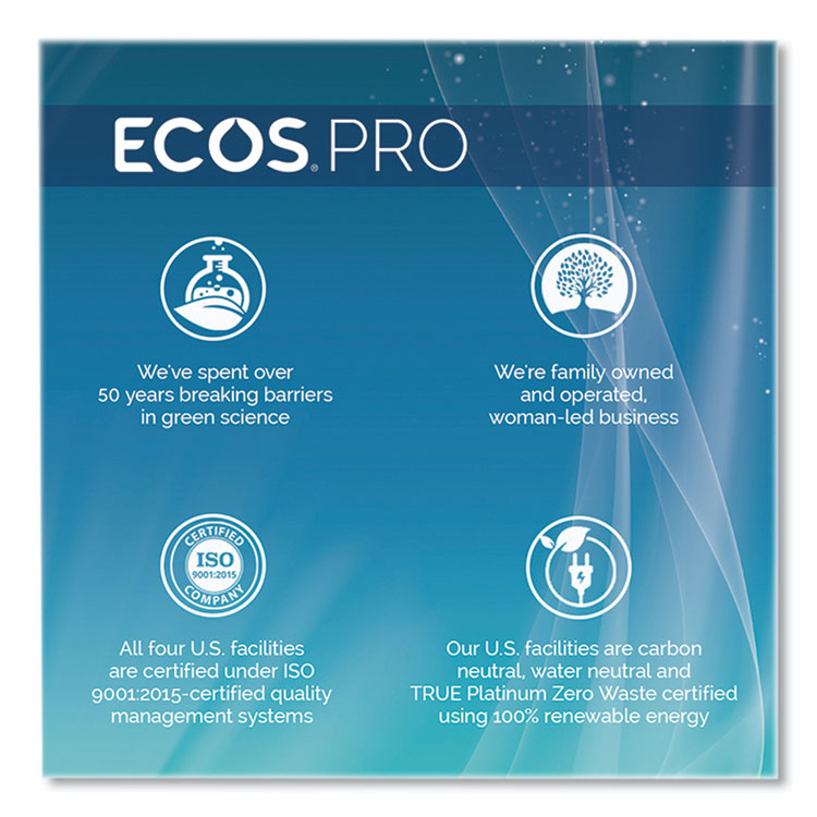 ECOS PRO liquid hand soap is a better choice for your hands. The crystal clear plant-powered formula is specifically designed to lift dirt and grease, while being gentle enough for even the most frequently washed hands. Infused with nourishing vitamin E and antioxidants to moisturize and protect hard-working hands. The pH-balanced formula is made using sustainable, plant-powered ingredients. Made without dyes and never tested on animals, it is also gray water and septic safe. Soap Type: Moisturizing Liquid; Volume Capacity: 1 gal; Scent: Free & Clear; Personal Soaps Application: Hand.