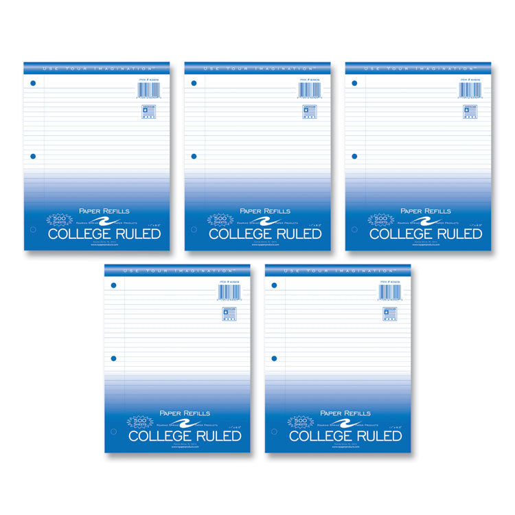 Loose Leaf Paper, 8.5 x 11, 3-Hole Punched, College Rule, White, 500 Sheets/Pack, 5 Packs/Carton