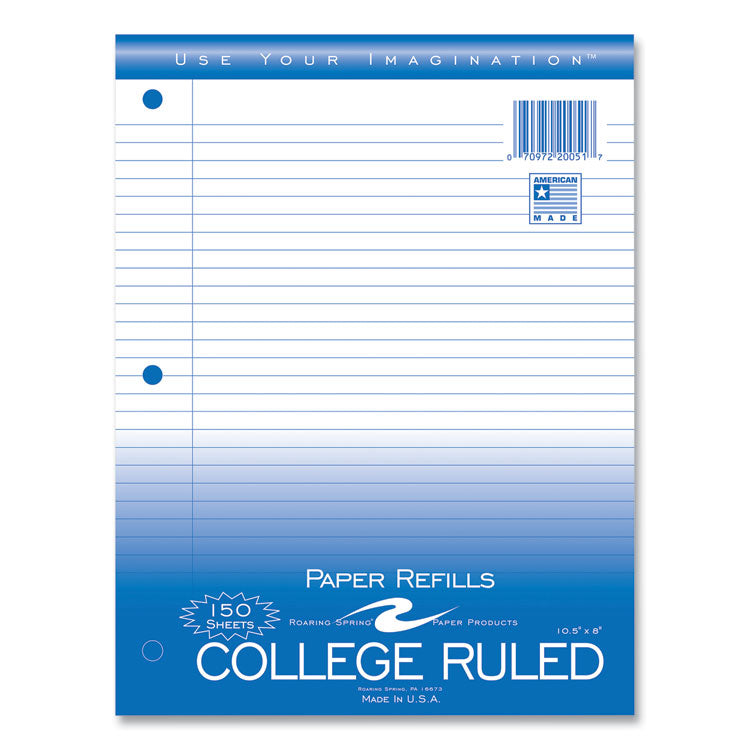 Loose Leaf Paper, 8 x 10.5, 3-Hole Punched, College Rule, White, 150 Sheets/Pack, 24 Packs/Carton