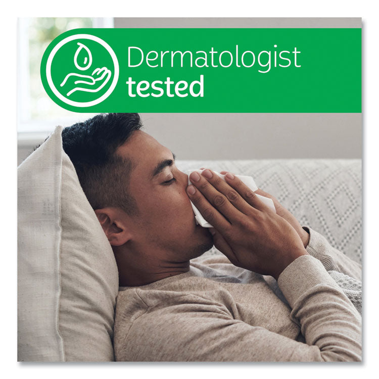 Soothing Lotion™ facial tissue features three-layers of soft and strong paper, each infused with a touch of coconut oil, aloe and vitamin E, to nourish skin with daily moisturizers while protecting you from chafing and redness by locking that moisture in, no matter how many times you reach for a tissue during the day. These ultra-soft, lotion-infused tissues are ideal when suffering from colds and allergies, and they may be the only tissues for those who suffer with sensitive skin throughout the year. Tissue Type: Facial; Number of Plies: 3; Number of Sheets: 60/Box; Length: 4".