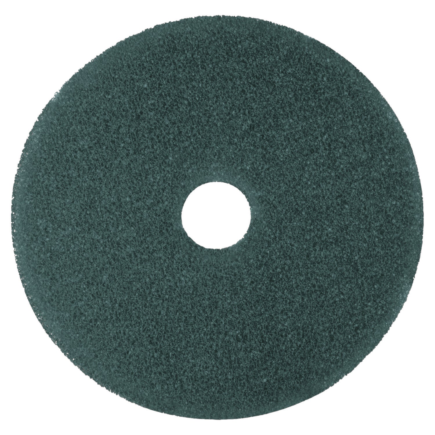 3M™ Blue Cleaner Pad 5300 is designed to remove worn finish, soils, scuffs, and spills and to prepare surfaces for recoating. The pad is constructed of high quality nylon and polyester synthetic fibers in a non-woven web. A durable resin coating system permeates the fibers throughout the pad with abrasive cleaning particles, providing consistent performance over the life of the pad. The resin coating will not be significantly affected by water, detergents, and cleaners normally used for floor maintenance. The floor scrubbing pad is reversible. Depending on the surface and application, the floor pad can be used with detergent solutions for dry scrubbing floors, and in heavy duty spray cleaning operations. Floor Pads Application: Scrubbing; Diameter: 17"; Color(s): Blue; Color Family: Blue.