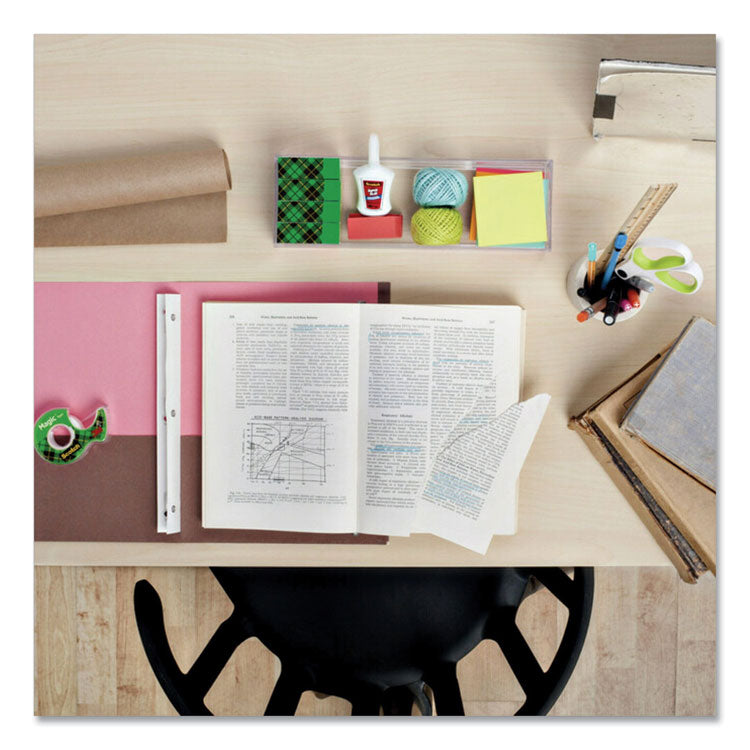 Scotch® Magic Tape is the original invisible tape preferred by homes, schools and home offices. Why? Because it works like magic: It's invisible! Gives you a strong, secure, permanent seal using trusted 3M adhesive technology. And with our easy-to-use Scotch® Tape dispenser (included), Scotch® Magic Tape rolls out smoothly, cuts evenly with no time, energy or tape wasted. Magically mend the many rips and tears of life securely, permanently, and invisibly. Core Size: 1"; Dispenser Included: Yes; Backing Material: Plastic; Width: 0.75".