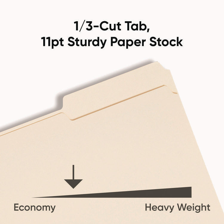 Manila File Folders, 1/3-Cut Tabs: Assorted, Legal Size, 0.75" Expansion, Manila, 100/Box