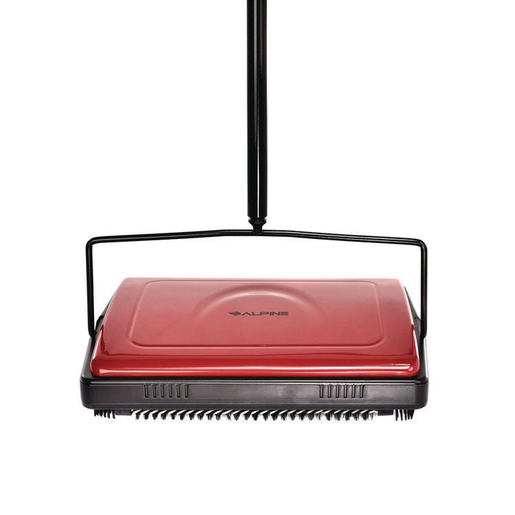 Manual Triple Brush Carpet and Floor Sweeper, 42.5" Handle, Red