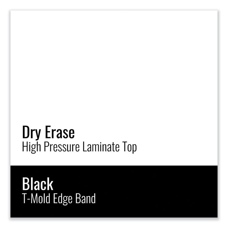 Encourage student collaboration and creativity. Activity possibilities grow exponentially when your tabletop is a dry erase markerboard. From a markerboard perspective, this activity table's high pressure laminate surface delivers far better dry erase performance than common melamine alternatives, while simultaneously providing superior scratch and stain resistance. It's also surprisingly easy to clean—food and beverage spills, crayon marks and most paint spills wipe away with a damp cloth. The sturdy, ultra-durable top's thick, high-density fiberboard core and built-in backer sheets minimize the potential for warping, while its full-perimeter, T-mold PVC band softens and protects the top's corners and edges. Four height-adjustable steel legs with hairpin braces adjust in 1" increments to accommodate students of all ages—from kindergarten to adult learning. Simply use the included speed-wrench for fast and easy height adjustments. Easy to assemble with pre-attached leg-mounts consisting of seven-screw mounting brackets and three-screw leg plates. Tables built to order and ship on a pallet to accommodate commercial addresses with loading docks. Top Color: White; Color Family: White; Base Color: Black/Silver; Top Shape: Square.