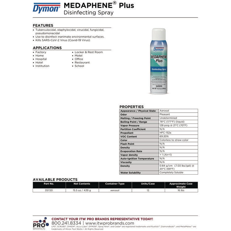 Medaphene Plus Disinfectant Spray, 15.5 Oz Aerosol Spray, 12/carton