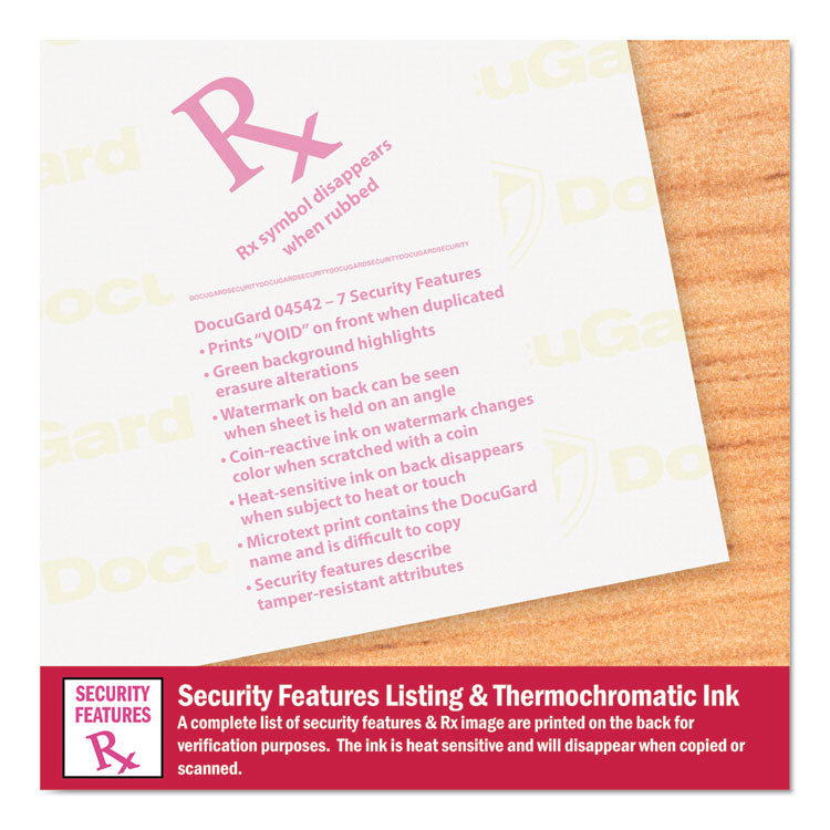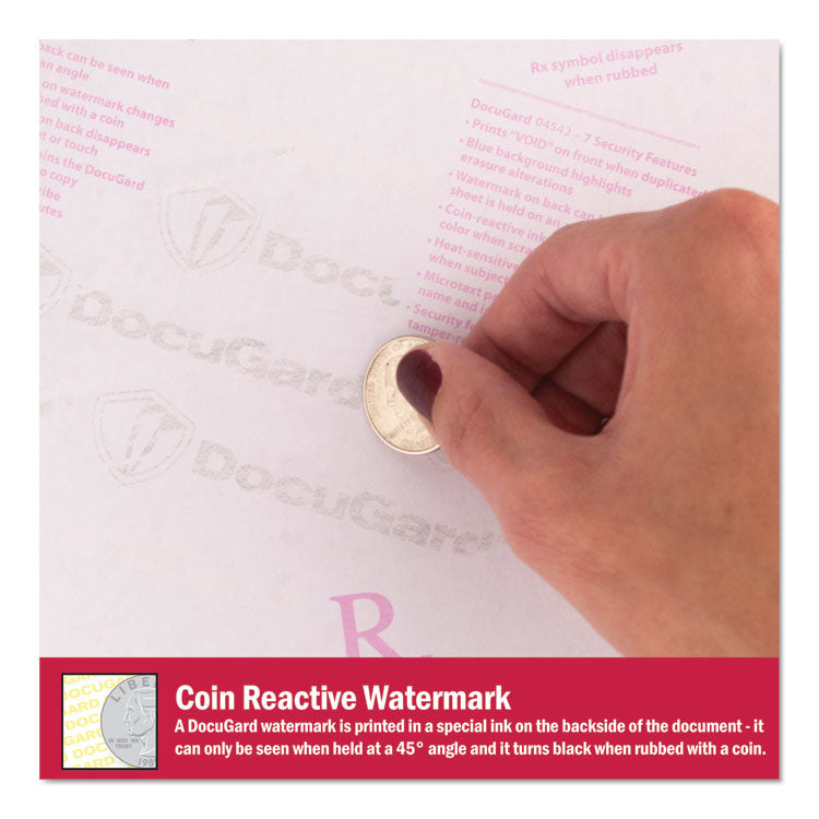 Prevent unauthorized copies and safeguard confidential business, legal, healthcare and personal documents. Designed to meet and exceed federal guidelines for tamper-resistant security paper set by the Centers for Medicare and Medicaid Services. Colored background with erasure protection. Artificial watermark is coin reactive. Advanced Medical Paper-7 Security Features. Advanced features: All Standard features plus heat-sensitive ink. Sheet/Roll Size: 8.5 x 11; Paper Basis Weight (lb): 24 lb Bond; Paper Grade (gsm): 90 gsm; Paper/Media Color(s): Green.