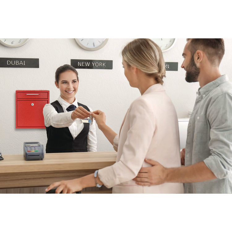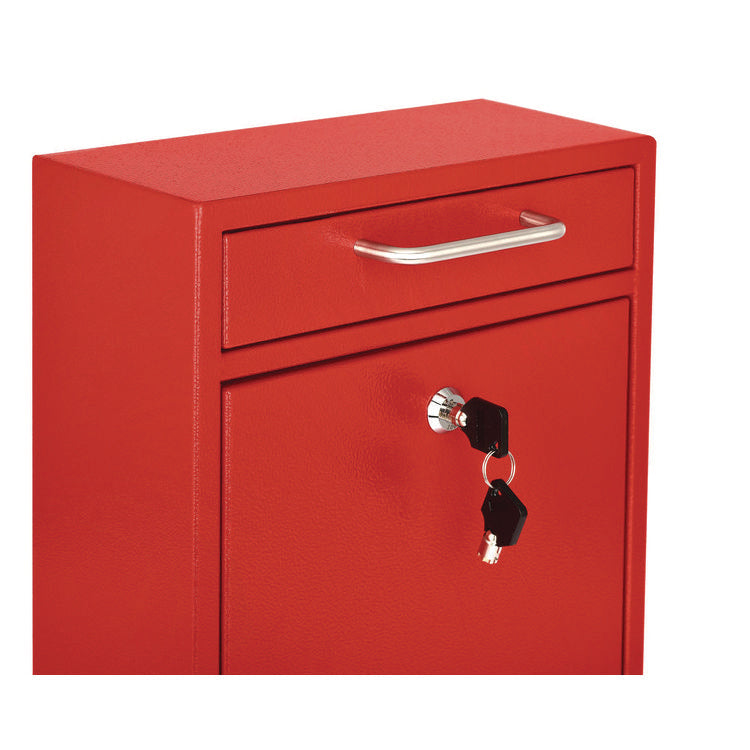 AdirOffice Locking Drop Box Wall Mounted Mailbox is designed to hold keys, cash, envelopes or other important materials that need to be dropped off after hours. Constructed of durable, heavy duty 16-gauge galvanized steel to provide long-lasting strength and furnished using a powder-coated, scratch-resistant finish, this mailbox is made to meet your needs year after year. Ideal for retail stores, military bases, rental facilities, customer service counters, manufacturing plants, auto dealers and other facilities, this secure drop box features an anti-fishing bin door that accepts letters, checks, keys and other small bundles. To prevent theft, an anti-pry latch locking mechanism is used. The locking access door features a commercial grade lock and includes three laser cut keys to ensure the items inside are safe and secure. To finish it off, this mailbox includes four mounting screws, four stainless steel washers, a driver bit and a drill bit for quick and easy installation of the box wherever you'd like to mount it. Material(s): Stainless Steel 304; Depth: 4.5"; Height: 12"; Width: 10.4".