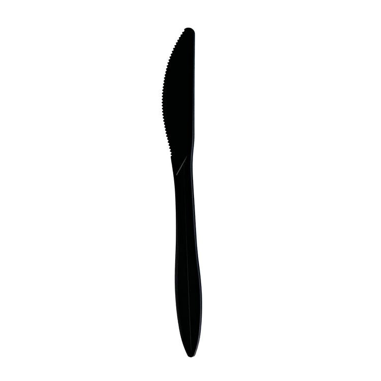 Mediumweight Wrapped Polypropylene Cutlery, Knife, Plastic, Black, 1,000/Carton