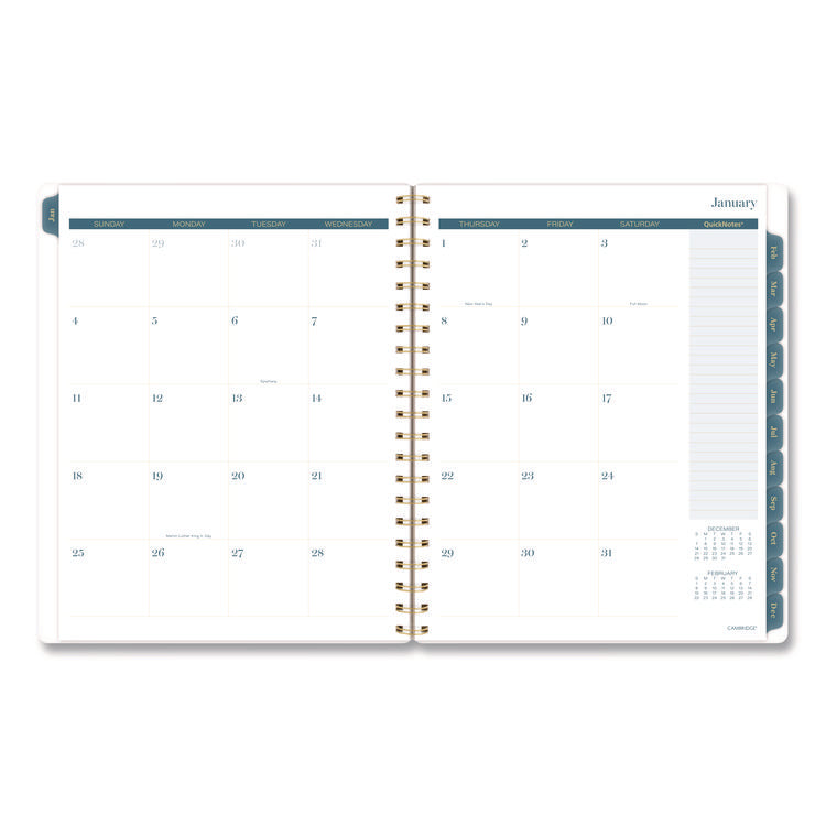 Add a pop of enchanting floral style to your year when you use the Cambridge Midnight Garden Weekly Monthly Planner. The bold florals stand out against the dark background and feature pops of gold accents. Start fresh each week with open daily sections and a small QuickNotes® area to help you stay on track all year long. The tabbed monthly pages help you see your big picture plans in an instant. Who doesn't love extras? Special pages include a double-sided poly pocket, three-year reference calendar, holiday list and others. The durable poly cover helps the planner stand up to wear and tear no matter where your day takes you. Our twin wire binding helps keep your pages secure and won't snag on your bag or clothing. Dated/Undated: Dated; Calendar Format: Weekly/Monthly; Calendar Spread Format: One Week per Two-Page Spread; One Month per Two-Page Spread; Edition Year: 2026.