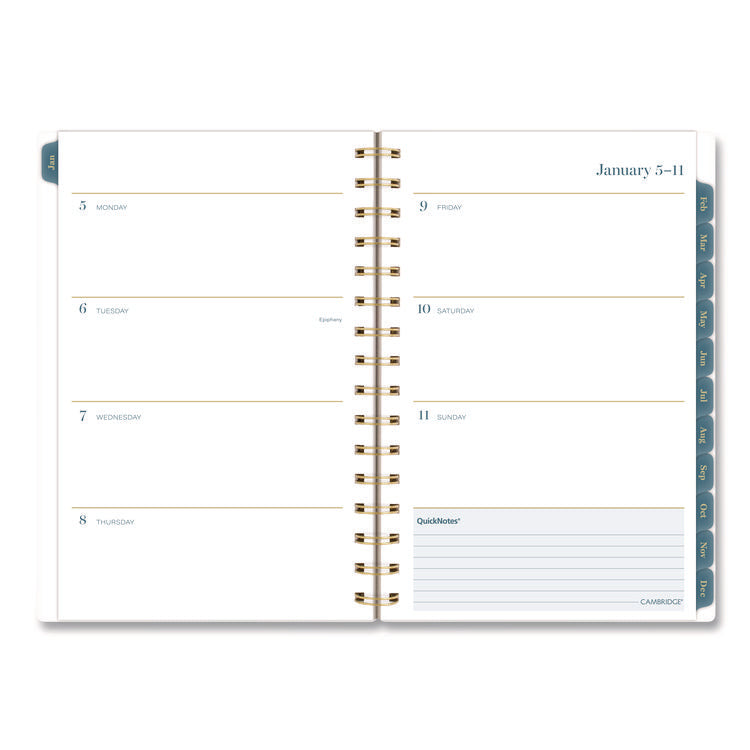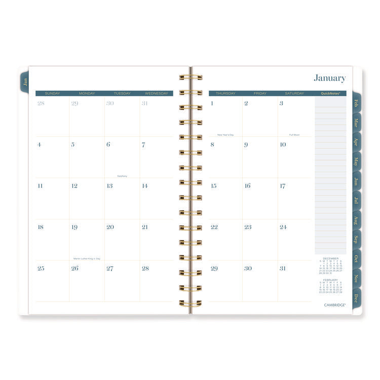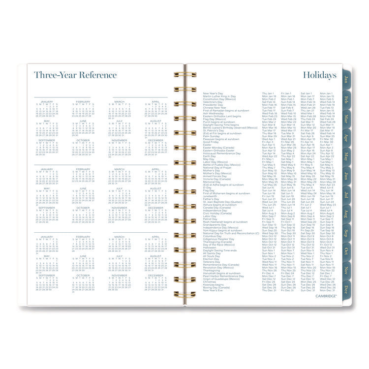 Add a pop of enchanting floral style to your year when you use the Cambridge Midnight Garden Weekly Monthly Planner. The bold florals stand out against the dark background and feature pops of gold accents. Start fresh each week with open daily sections and a small QuickNotes® area to help you stay on track all year long. The tabbed monthly pages help you see your big picture plans in an instant. Who doesn't love extras? Special pages include a double-sided poly pocket, three-year reference calendar, holiday list and others. The durable poly cover helps the planner stand up to wear and tear no matter where your day takes you. Our twin wire binding helps keep your pages secure and won't snag on your bag or clothing. Dated/Undated: Dated; Calendar Format: Weekly/Monthly; Calendar Spread Format: One Week per Two-Page Spread; One Month per Two-Page Spread; Edition Year: 2026.