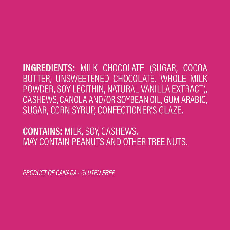 Milk Chocolate Covered Cashews are whole roasted cashews covered in creamy milk chocolate. Whether you eat them right out of the container or sprinkle them on ice cream or yogurt, they make the perfect sweet treat for cashew and chocolate lovers alike. Food Type: Nuts; Flavor: Milk Chocolate; Capacity (Weight): 44 oz; Sugar Free: No.