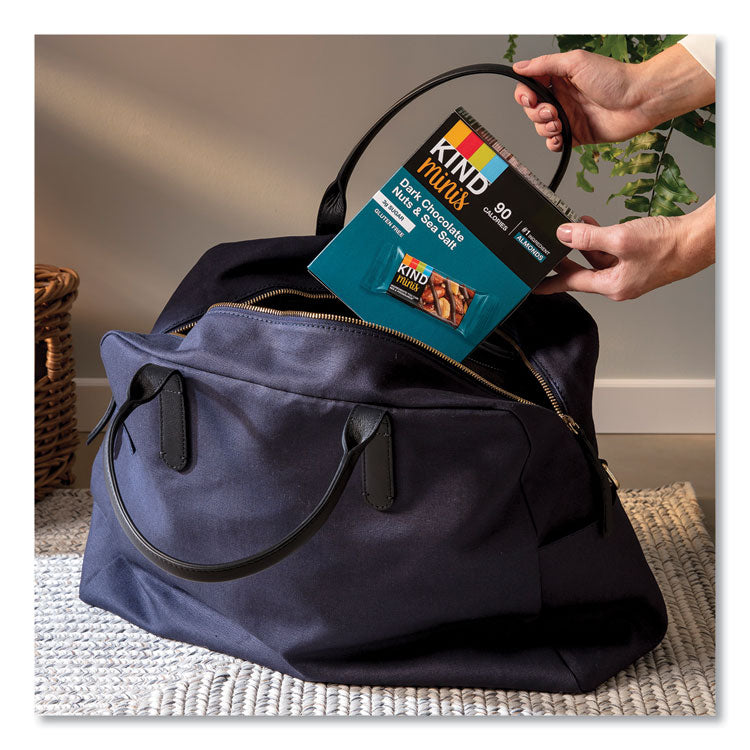 KIND Minis are mini versions of current Core Bar offerings. Portion control-half the size of full size Core Bar, only 100 or less calories. KIND products are made with nutritionally-dense ingredients like whole nuts, fruits and whole grains-no secret ingredients and no artificial flavors, preservatives or sweeteners. Nothing to hide. These snack bars come packed as individually wrapped snacks for a convenient option that makes eating healthy easier. It's the perfect pick-me-up when life gets in the way. KIND Minis contain five grams of sugar, are low in sodium, and are a good source of fiber. This nut bar is also gluten free, has a low glycemic index, and is made without genetically engineered ingredients. Food Type: Nutrition & Snack Bars; Flavor: Dark Chocolate Nuts & Sea Salt; Capacity (Weight): 0.7 oz; Sugar Free: No.