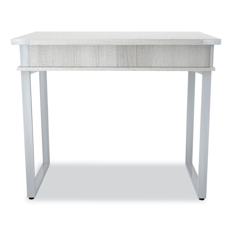 Mirella SOHO Desk with Drawer features a contemporary modern design to complement any modern aesthetic. Its laminate top, drawer for storage, and durable metal legs will provide years of use, perfect for the work-from-home office. Pair with a Safco Chair and workspace accessories for a complete workspace. Declutter your workspace by storing pens, pencils, and other supplies in the desk drawer for easy access. Series Name: Safco® Mirella Series; Worksurface/Base Color: Gray; Color Family: Gray; Worksurface Shape: Rectangular.