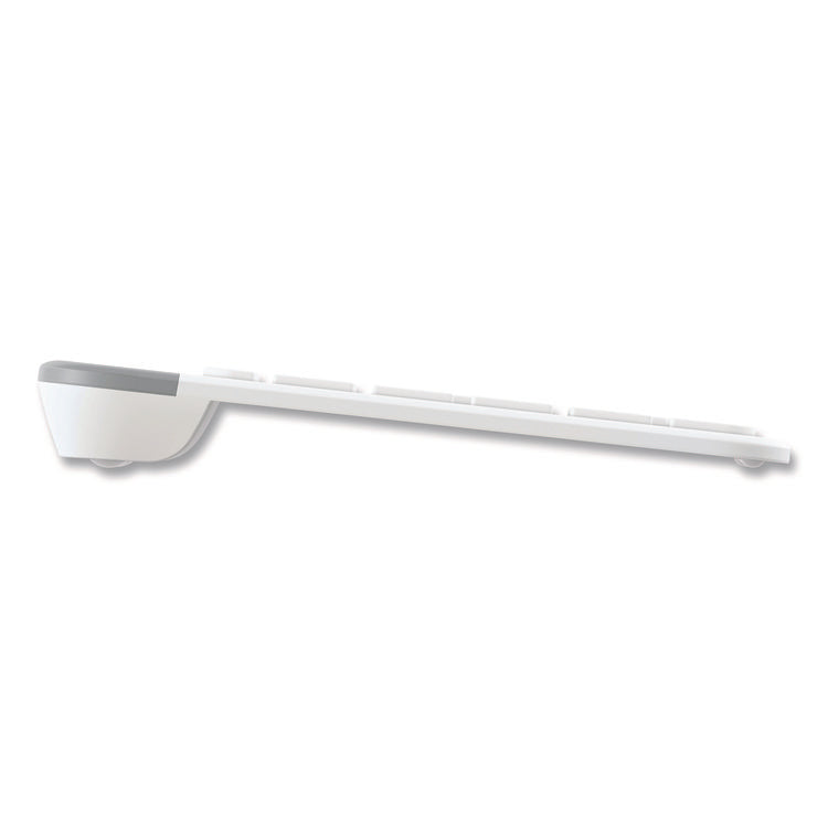 Ultra-thin and design-forward keyboard and mouse combo perfect for getting things done efficiently and quietly, even in the tightest desk spaces. The slim profile and minimalist design transform your keyboard and mouse into a visual statement that elevates your desk setup. A slim profile and compact design make typing and mousing a pleasure. Low-profile keys give you that laptop-like typing experience you know and love. Whisper-quiet keys and a 90% noise-reduced mouse let you power through in near-silence. Long battery life and an easy plug-and-play 2.4 GHz USB receiver ensure a reliable, hassle-free experience. Maximum Wireless Range: 33 ft; Connector/Port/Interface: USB; Wired/Wireless: Wireless; Operating System Compatibility: Chrome OS™; Windows® 7, 8, 10 and Later, Surface.