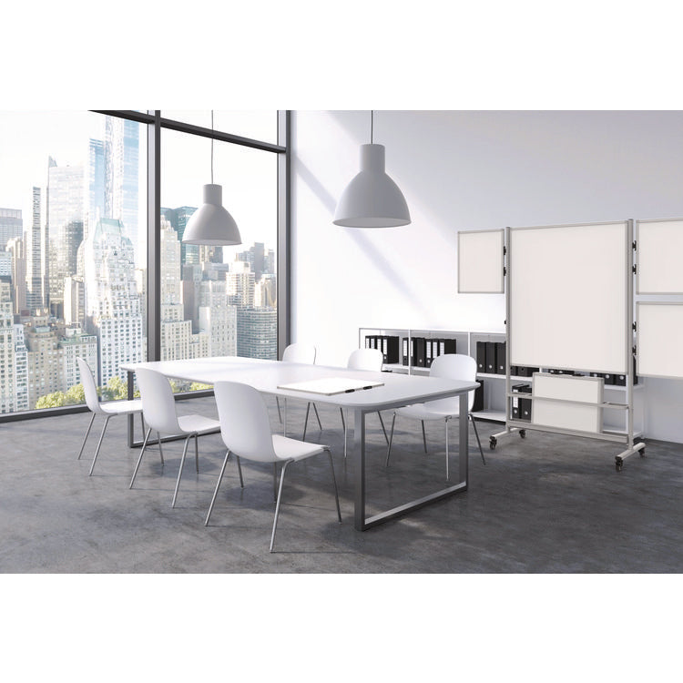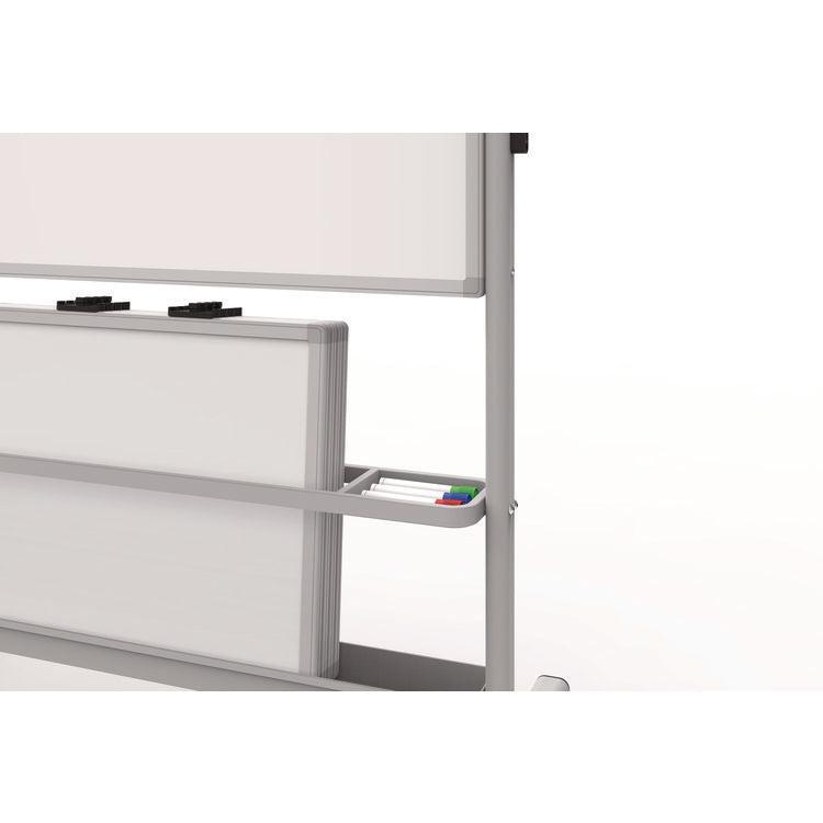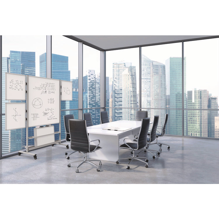 Transform your business or classroom into an interactive workspace with the Luxor Collaboration Station, a double-sided mobile magnetic whiteboard with four attachable marker boards. Designed to create a productive work environment where teammates can interact and share ideas, this mobile whiteboard's surface area is easily extended by attaching four small whiteboards to connectors on the sturdy steel frame. The double-sided small boards can be used individually and when not in use, are conveniently stored in the built-in storage tray. Whether visualizing ideas on the large whiteboard or with all five boards joined together, or using individual boards for group interaction, the Collaboration Station is the perfect tool to inspire innovation and creativity. Double-Sided Mobile Magnetic Whiteboard with Four Attachable Marker Boards. Board Surface Type(s): Dry Erase; Magnetic Board Surface: Yes; Surface Use Rating: Heavy/Frequent Use; Surface Material: Painted Steel.