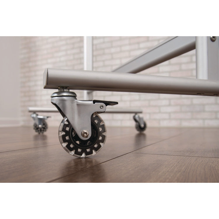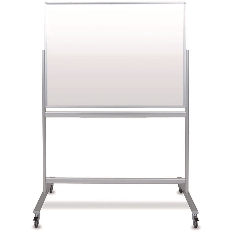 Luxor mobile magnetic glass whiteboards double the writing space and are designed to move easily from location to location making them perfect for collaborative workspaces. The durable aluminum frame and wide base create stability while the super-clear glass offers a bright white surface that is optimal for wet/dry erase markers. This double-sided magnetic glass board presents a contemporary look that complements any office, conference room, training center or classroom, while the 3" rollerblade-style casters with non-marking treads guarantee smooth mobility. Luxor magnetic glass dry-erase boards are easy to assemble and are packaged with supportive materials that are highly resistant to damage during shipping. Board Surface Type(s): Dry Erase; Magnetic Board Surface: Yes; Surface Use Rating: Heavy/Frequent Use; Surface Material: Glass.