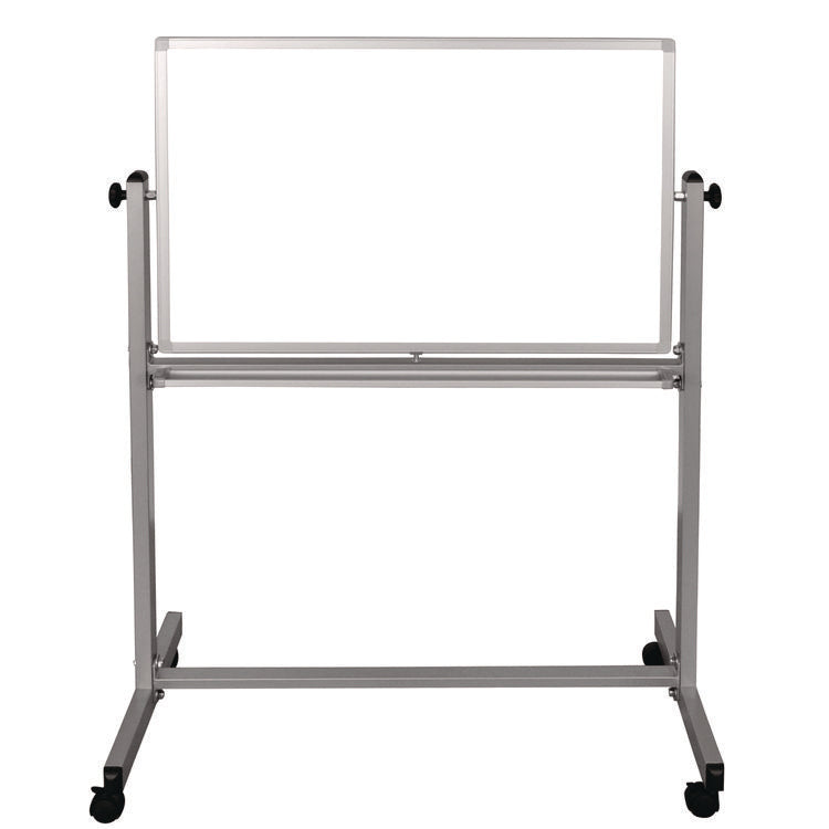 Built for brainstorming, teaching or organizing ideas and information, this Luxor mobile magnetic dry erase board doubles the writing space and delivers the durable mobility needed for dynamic workspaces. A slender-yet-sturdy frame provides a professional appearance and rolling casters make it easy move around a room. To flip the board, simply loosen the side knobs and disengage the spring-loaded locking clip. Need to display charts, papers or photos? Use the magnetic surface as a bulletin board. Look no further for a high-quality, affordable mobile marker board. Board Surface Type(s): Dry Erase; Magnetic Board Surface: Yes; Surface Use Rating: Heavy/Frequent Use; Surface Material: Painted Steel.