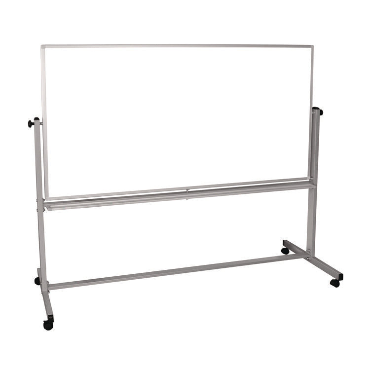 Built for brainstorming, teaching or organizing ideas and information, this Luxor mobile magnetic dry erase board doubles the writing space and delivers the durable mobility needed for dynamic workspaces. A slender-yet-sturdy frame provides a professional appearance and rolling casters make it easy move around a room. To flip the board, simply loosen the side knobs and disengage the spring-loaded locking clip. Need to display charts, papers or photos? Use the magnetic surface as a bulletin board. Look no further for a high-quality, affordable mobile marker board. Board Surface Type(s): Dry Erase; Magnetic Board Surface: Yes; Surface Use Rating: Heavy/Frequent Use; Surface Material: Painted Steel.