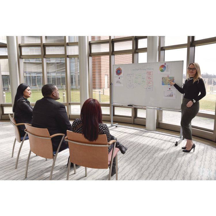 Mobile Magnetic Whiteboard, 72" x 40", White Surface, Silver Aluminum Frame