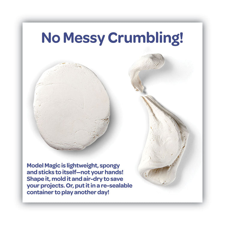 Add a new dimension to creative art projects with Crayola Model Magic! Model Magic is a soft, easy-to-use modeling material that lets you and your kids create colorful, keepable art. Plus, it's great to have on hand for slime supplies. Use this to bring your daydreams to life and have material left over! Unlike traditional modeling clay, which can be tricky for young artists to use, Model Magic is designed for ease of use. It usually air-dries within 24 hours. When dry, Model Magic is lightweight and flexible. It makes a great craft activity for kids. Classpack®-Includes 75 pouches, 1 oz each. Clay/Pottery Type: Modeling; Color(s): White; Age Recommendation: Ages 5 and Up; Weight: 6 lbs 13 oz.