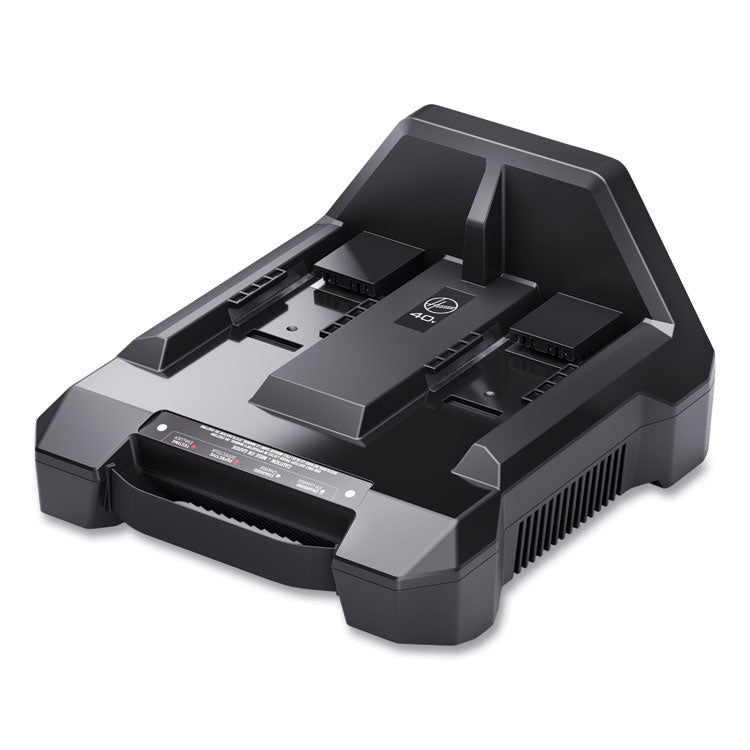 Allows you to charge two batteries at the same time in 90 minutes. Enhances productivity and empowers the performance of your device. When you go cordless with the HOOVER® Commercial MPWR™ 40 V battery system, your team has the swap-and-go flexibility to seamlessly recharge and replace batteries among multiple uprights and backpacks without slowing down. Battery Type: Li-Ion; Battery Size: 40 V; Charge Time: 90 min; Cord Length: 6 ft.