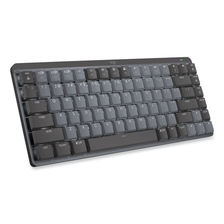 Logitech MX Mechanical is a keyboard with extraordinary feel, precision, and performance. Low-profile mechanical keys deliver satisfying feedback with every keystroke. Your fingers glide effortlessly across the matte surface of the keys and dual color keycaps guide peripheral vision to make it easy to orient your fingers and stay in your flow. Features a design that promotes better posture and improved ergonomics. Backlit keys automatically adjust to suit changing lighting conditions. MX Mechanical also boasts multi-device, multi OS connectivity via Bluetooth Low Energy and USB-C recharging. MX Mechanical Mini. Wired/Wireless: Wireless; Maximum Wireless Range: 32 ft; Connector/Port/Interface: Bluetooth®; Logi Bolt; USB; Keyboard Design: Compact.