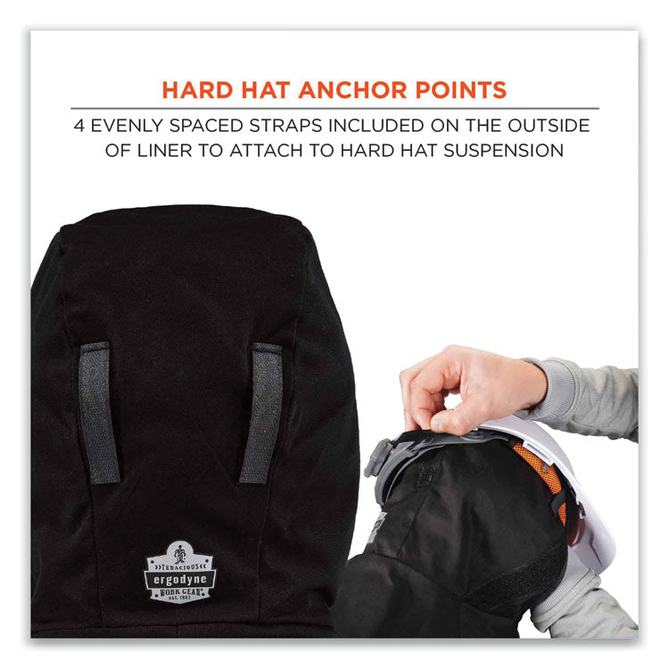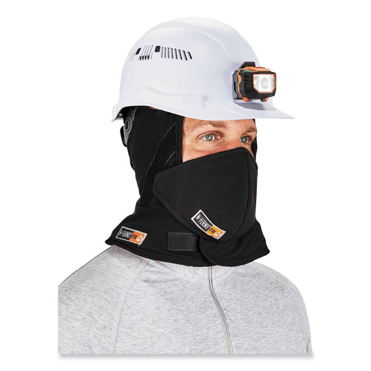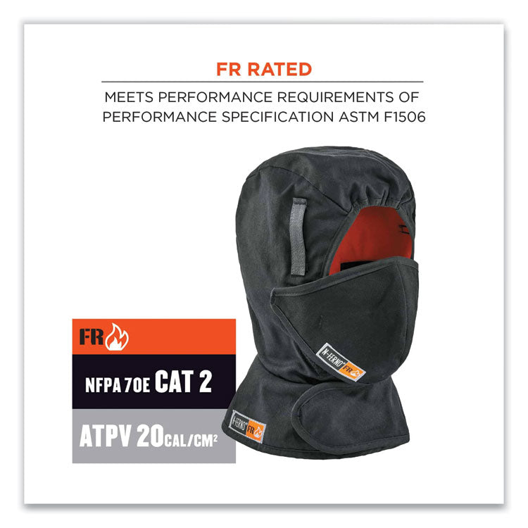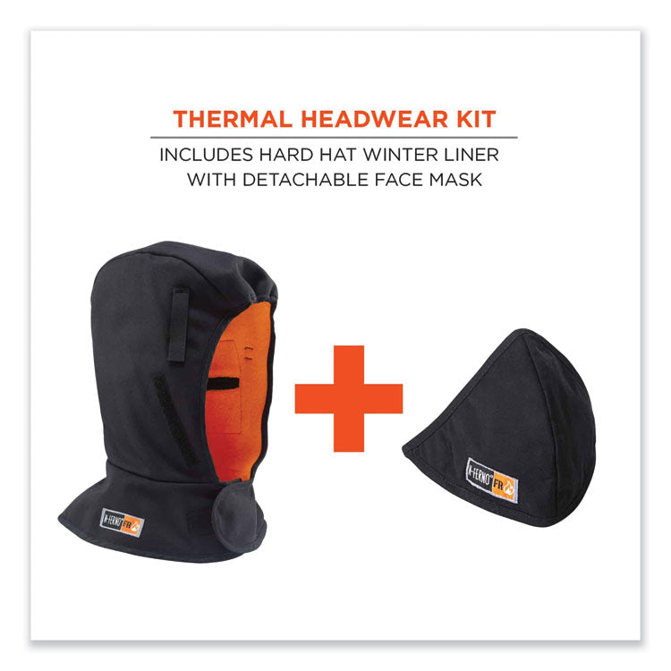 The N-Ferno 6876 2-Layer FR Winter Hard Hat Liner with Mouthpiece Kit includes a winter hard hat liner with two layers of insulation and flame-resistant technology plus a thermal mouthpiece attachment for full-face coverage. The lightweight thermal liner is shoulder-length to keep head, ears and neck covered and fits comfortably under helmets or hard hats without feeling too bulky. Both the N-Ferno 6882 FR Hard Hat Thermal Liner and N-Ferno 6872 FR Thermal Mouthpiece have a fire-resistant outer shell and lining made of 60% modacrylic cotton and 40% cotton twill blend to stand up to tough environments and meets requirements of performance specification ASTM F1506; classified CAT2 according to NFPA 70E. Arc-rated; ATPV rating of 20 cal/cm2. There are four hook and loop straps on the exterior of the liner designed to securely attach to the interior of a hard hat for versatile protection in extreme work environments. Apparel Type: Winter Liner; Mouthpiece; Material(s): Modacrylic Cotton; Color(s): Black; Color Family: Black.