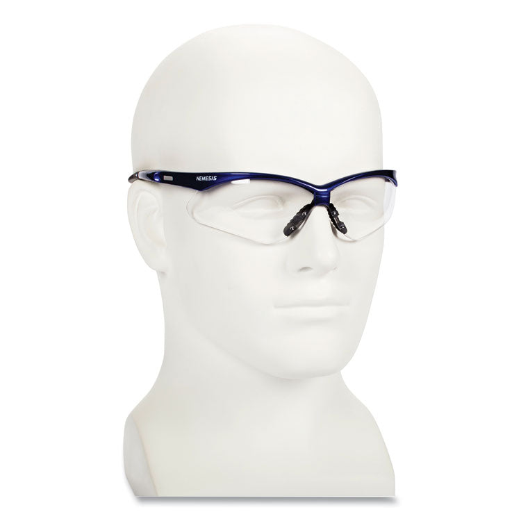 Nemesis Safety Glasses, Metallic Blue Frame, Clear Anti-Fog Lens, 12/Box