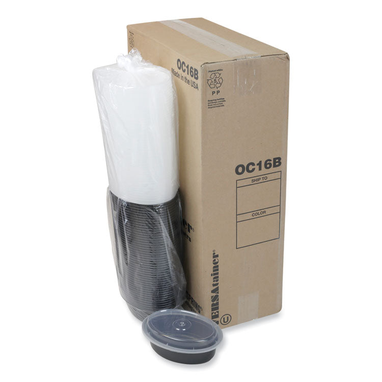 Newspring VERSAtainer Microwavable Containers, Oval, 16 oz, 6.8 x 4.8 x 1.9, Black/Clear, Plastic, 150/Carton