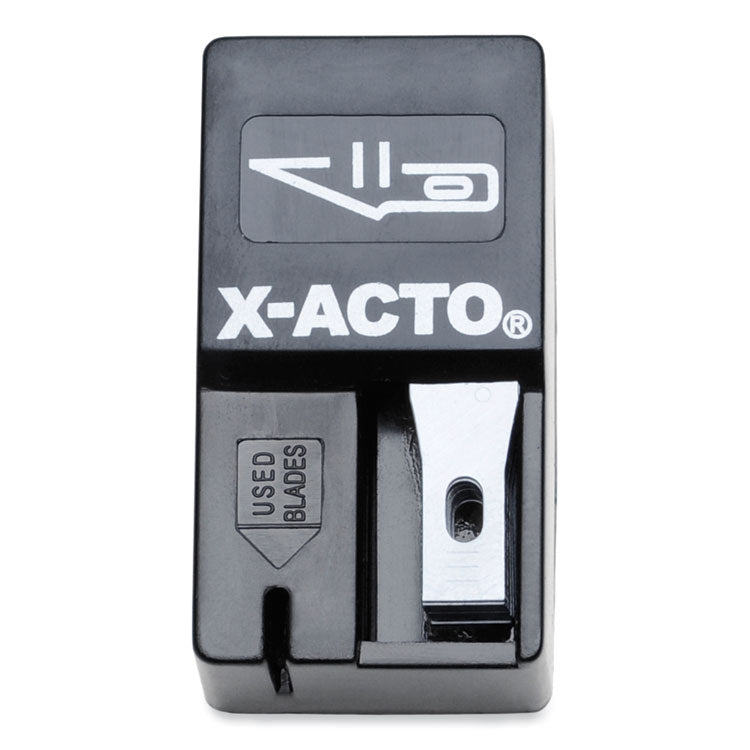Safe way to keep and dispense blades. Contains 15 precision-crafted carbon blades. Slot for used blades. Nonrefillable. Blade Type: Hobby Knife; Material(s): Carbon; Color(s): Steel; Color Family: Silver.