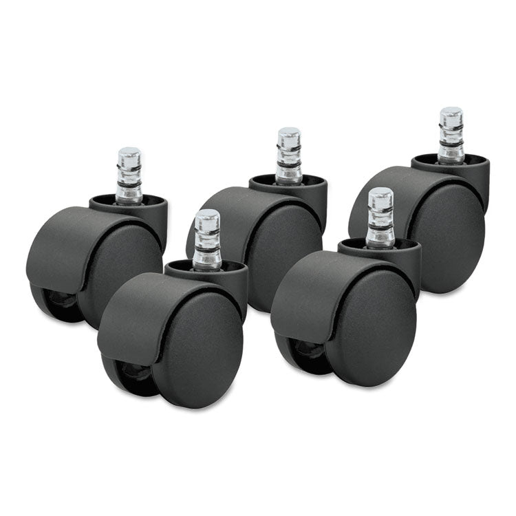 Noiseless Duet Casters, Grip Ring Type R Stem, 2" Soft Polyurethane Wheel, Matte Black, 5/Set
