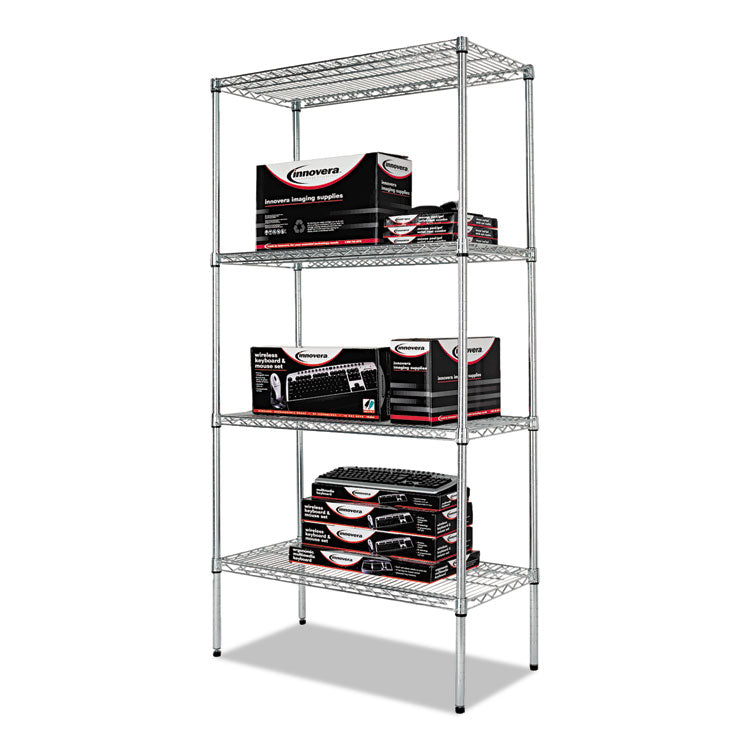 NSF Certified Industrial Four-Shelf Wire Shelving Kit, 36w x 18d x 72h, Silver