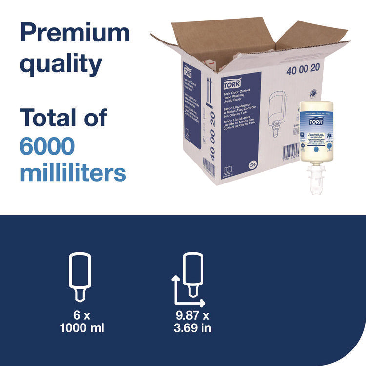 Odor-Control Hand Soap Liquid S4 Refill, Perfume-Free, 1 L, 6/Carton