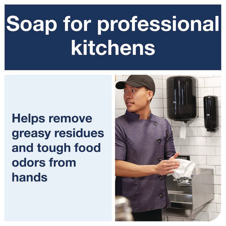 This kitchen hand soap helps remove food fats and tough odors from hands. Specially designed for professional chefs and the food industry, this non-perfumed liquid soap is suitable for frequent use and is gentle to the skin. Tork Odor-Control soap is compatible with Tork S4 skincare dispensers. The sealed bottle helps to promote good hygiene and reduce the risk of cross-contamination. The bottle also collapses as the contents are used, helping to reduce product waste. Soap Type: Liquid; Personal Soaps Application: Hand; Volume Capacity: 1 L; Scent: Perfume-Free.