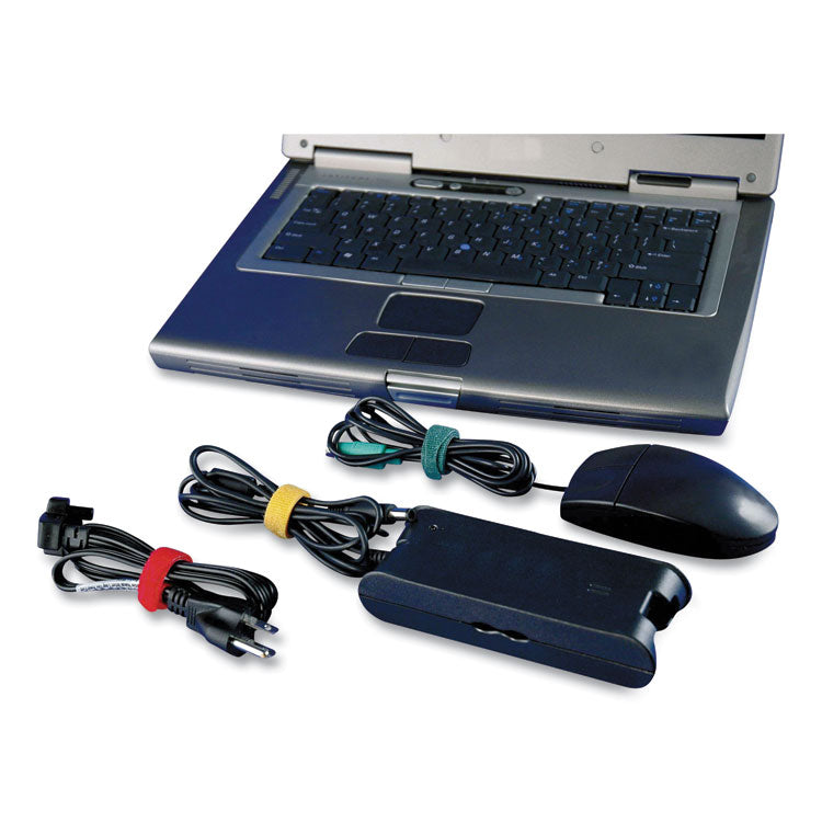 VELCRO® Brand ONE-WRAP® Ties and Straps are ideal for organizing and harnessing data cables, electrical wires, and fiber optics. The simple one-piece design wraps onto itself for a secure hold. Reusable, low profile, and economical option for fastening wires and organizing cords. Assorted Colors—Blue, green, orange, red and yellow. Hook and Loop Fastener Type: Tie; Suggested Use: Indoor Light-Duty; Color(s): Multicolor; Tape Pad Size: 0.5" x 8".