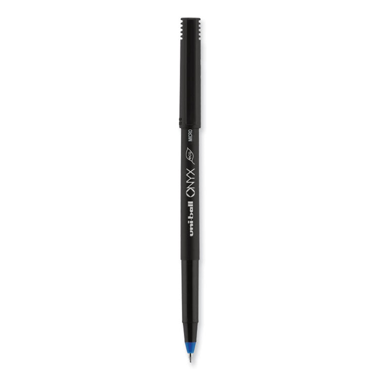Stock your office, home or classroom with Onyx Rollerball Stick Pens from uni-ball featuring strong, long lasting tip sizes. This rollerball pen delivers the silky-smooth glide of a fountain pen without smudging for effortless writing. ONYX pens produce crisp and precise lines for intricate writing, making it easy to create super fine details in your drawings and diagrams. Capped roller pens are useful for a variety of tasks from note taking to signing checks and legal documents to uniquely embellishing fun and creative writing projects. Innovative uni Super Ink technology forms a strong bond with the paper, protecting from water, fading and fraud. A great economic and environmentally-conscious choice as this super sleek micro point roller pen is made from post-consumer recycled material. Pen Sub-Brand & Product Family: ONYX®; Pen Type: Rollerball Pen; Pen Style: Stick; Pen Tip Type: Conical.