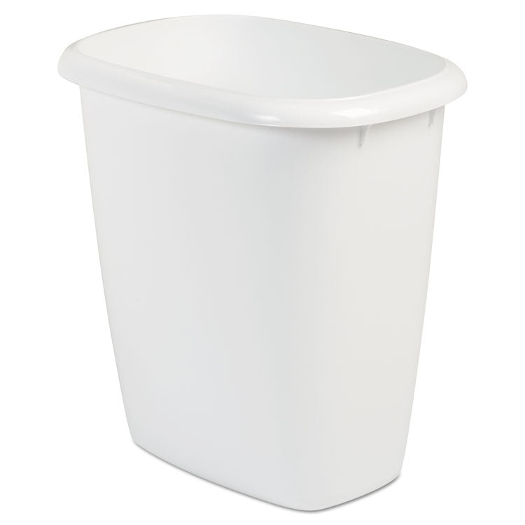 Lightweight and durable, this open-top wastebasket is built to last. Rounded edges with reinforced rim and sides. Smooth-finish plastic is easy to clean. Oval Vanity Wastebasket. Waste Receptacle Type: Powder Room Wastebasket; Material(s): Plastic; Application: Indoor All-Purpose Waste Disposal; Interior Volume Capacity: 14.4 qt.
